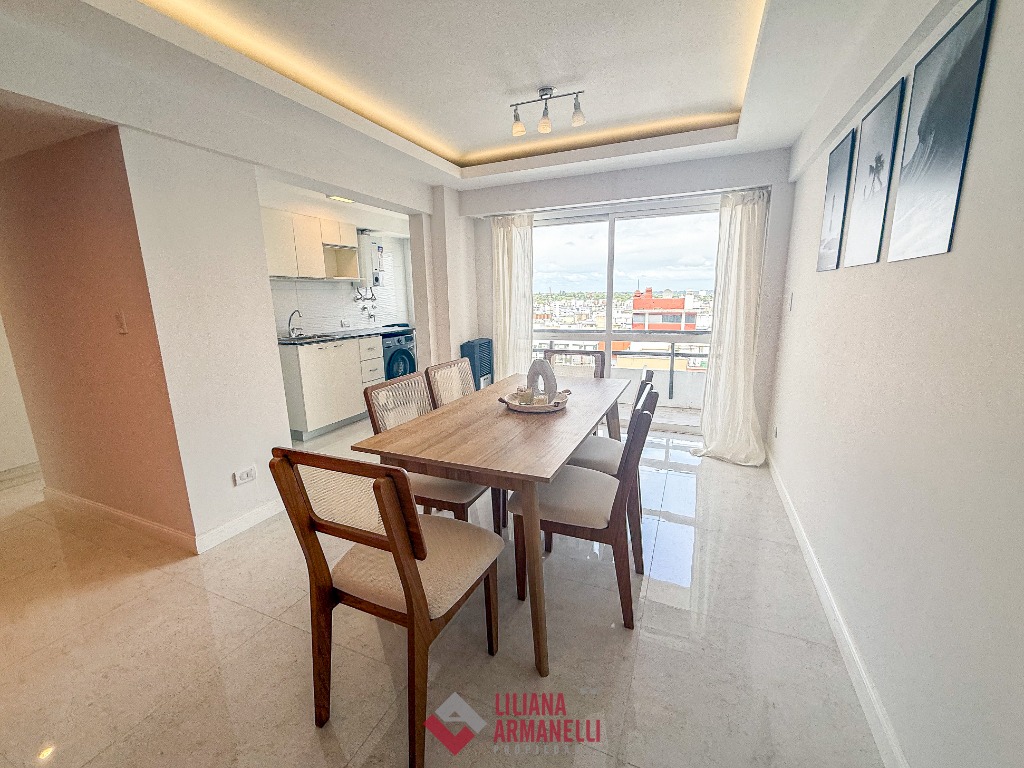 Semipiso de 3 ambientes. Amplio living comedor con pisos tarugados. Cocina separada por barra desayunadora. Heladera. Lavarropas. Balcón saliente. Dormitorio con placard y baño en suite con hidromasaje. Segundo dormitorio con placard. Muebles. Baño completo con bañera. Cochera. 85 mts. Ubicado en Plaza Mitre.