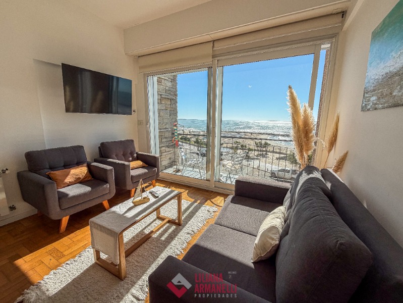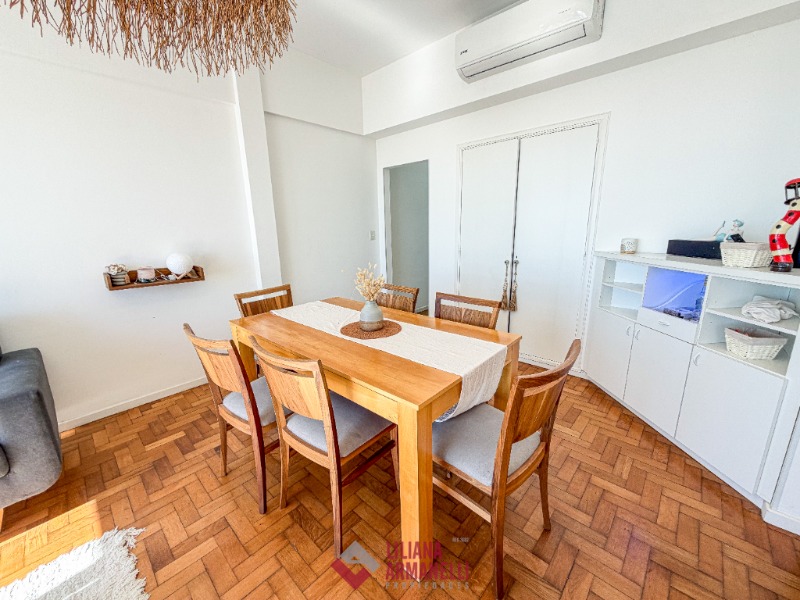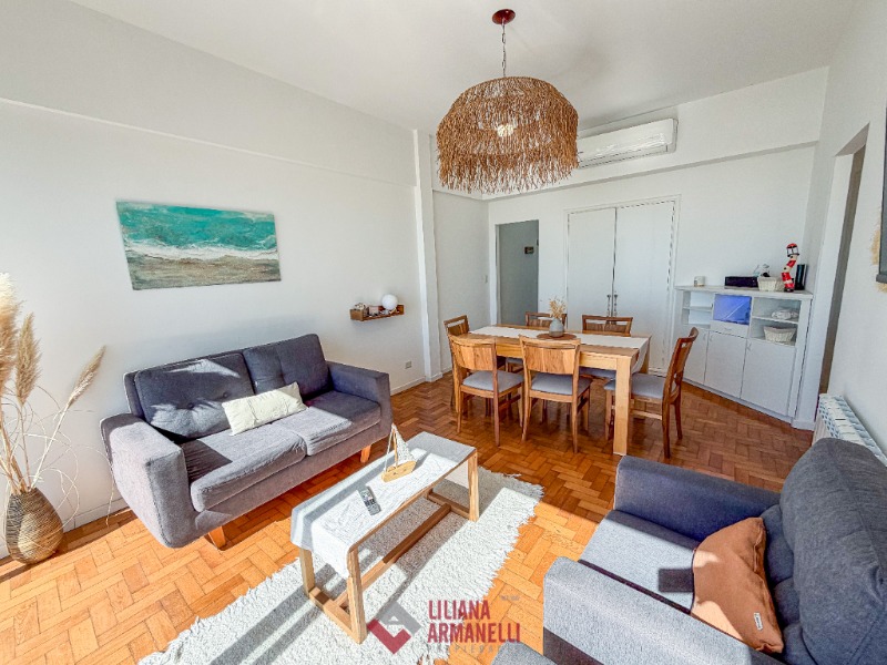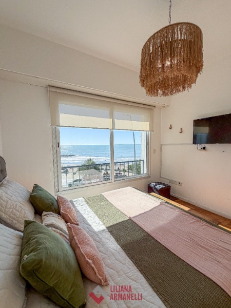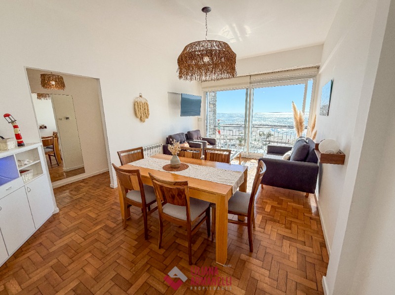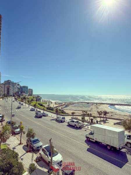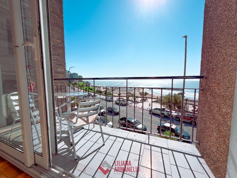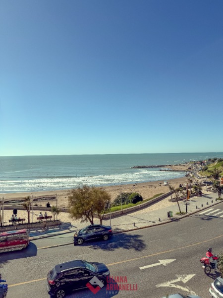 Departamento de 3 ambientes frente al mar. Amplio living comedor a la calle. Balcón saliente con vista plena al mar. Cocina separada con ventilación natural. Dormitorio a la calle con placard y vista al mar. baño completo con bañera. Segundo dormitorio al cfte. 66 mts. Cochera. reciclado. Ubicado en Playa Varese.
